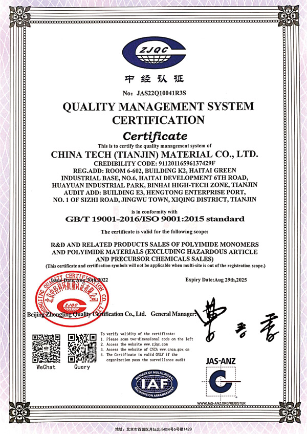 天津眾泰材料科技有限公司(以下簡稱“眾泰”),是一家“以先進功能性聚酰亞胺單體研發(fā)生產(chǎn)為核心,致力于推動全球聚酰亞胺材料產(chǎn)業(yè)發(fā)展”為使命的創(chuàng)新型高新技術(shù)企業(yè)。眾泰研制的聚酰亞胺單體目前已廣泛應用于無色透明柔性聚酰亞胺薄膜、柔性顯示材料、5G新材料等諸多高科技領域產(chǎn)品的生產(chǎn)。